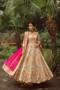 A long kalidar dress made on organza with heavy adda work on it. Gotta finished along with chatta pati.Jamawar sharara with gotta and chata pati finish.Heavy four sides borders on mukesh dupatta.