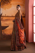 Even the rainbows enjoy her ease! A pretty Rust Orange Anarkali adorned in zardozi, gotta & handmade silk threads along with net base dupatta embellished with four side border. A perfect fit for your blazing day!