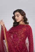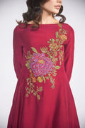 Immerse yourself in the luxurious drape of our wine-colored silk masterpiece. Six panels cascade down the front and back, each a whisper of elegance, adorned with delicate floral embroidery and shimmering zardozi details. Pure silk culottes dance in perfect harmony, and an embroidered net dupatta completes the symphony of opulence. This is more than an outfit; it's a declaration of your discerning taste, a timeless treasure fit for a queen.