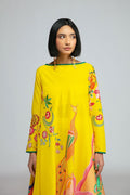 Premium quality lawn drape shirt in a stunning shade of yellow with digital printing.