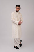 Product Description: Farhad is a beautiful Floral Geometric Self-Embroidered Chikankari Cotton Kurta paired with a Plain Shalwar. This white kurta features intricate floral and geometric chikankari embroidery, showcasing the rich tradition of artful craftsmanship.