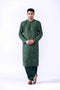 Self Embroidered karandi over sized short-length cotton Karandi kurta paired with Korean raw silk pants .