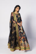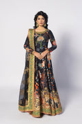Description: Enveil yourself in an aura of mystique with this captivating black pishwas, a testament to the allure of subtle opulence. The premium, digitally printed lawn fabric boasts a captivating floral design, its dark base a canvas for vibrant blooms that come alive with every movement. The eight-yard flare cascades dramatically, its grandeur accentuated by the meticulously embroidered border at the hem. As your gaze ascends, it meets a stunning zardozi neck patch, a masterpiece of intricate handwork that shimmers with a life of its own. The ensemble is further elevated by a pair of plain lawn pants, their simplicity allowing the pishwas to take center stage. A luxurious organza dupatta, woven with intricate banarsi designs, drapes effortlessly over your silhouette, its embroidered borders and a touch of delicate lace adding a touch of whimsical charm. This pishwas is more than just an outfit; it's a carefully curated experience, an indulgence for the woman who appreciates the art of understated luxury. Stitched Includes