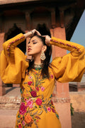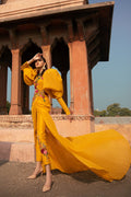 Mustard gold floor length two tier gown with intricately hand
